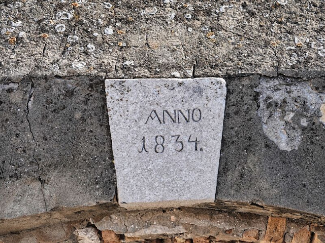 This water-powered grinding wheel was used to grind grain into flour - the water turned the upper wheel that ground the items against the stationary lower wheel