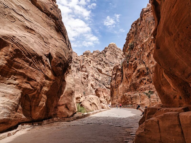 | We finally entered the canyon - this is about 1,200 meters or nearly 3/4 of a mile long and all-natural except for the path that has been smoothed with paving - it was created by erosion from the Red Sea and earthquakes |