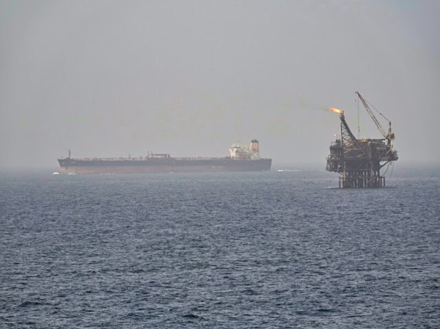 It was interesting looking outside today. Since we're heading to the entry of the Suez Canal, it means we're smack dab in the middle of shipping lanes and that means traffic. Plus, there are fishing and oil rigs here, so looking around is fun. Even with the heavy haze in the air today, there was a lot to see at sea.