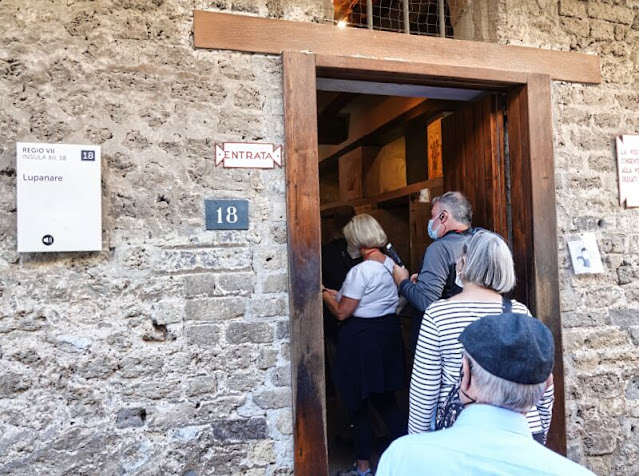 Pompeii was a thriving Roman city near Naples. With its own port, Pompeii was a bustling business center with active shops and businesses, including the oldest profession. In 62 A.D., the city was devastated by a major earthquake. That didn't deter the entrepreneurs in Pompeii who rebuilt the city, improving on it in the process. All was well for 17 more years, until October 24, 79 A.D. when nearby Mount Vesuvius erupted, blanketing the entire city under meters of pumice and ash. In addition to burying the city, as the erupted material hit the sea, it released noxious fumes, ensuring that the entire population was wiped out in a matter of a few days. They believe that the eruption happened on day #1, followed by ash and gasses on day #2. Day #3 brought lava and the complete burial and elimination of the entire city of Pompeii. It sat underground for years until being discovered in the late 16th century. Excavations have been happening since. Because of the way it was buried, much of Pompeii is amazingly well-preserved. Our guide said that 20,000 people lived in Pompeii, but Wikipedia suggests that the number is closer to 11,500, based on the number of residences that have been discovered. Let's call it between 10,000 and 20,000, depending on what research you believe.