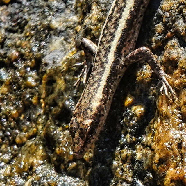 We went back down to the dock to wait for our excursion to begin. A bunch of these little guys, skinks, I think, were scurrying around the rocks near the dock.
