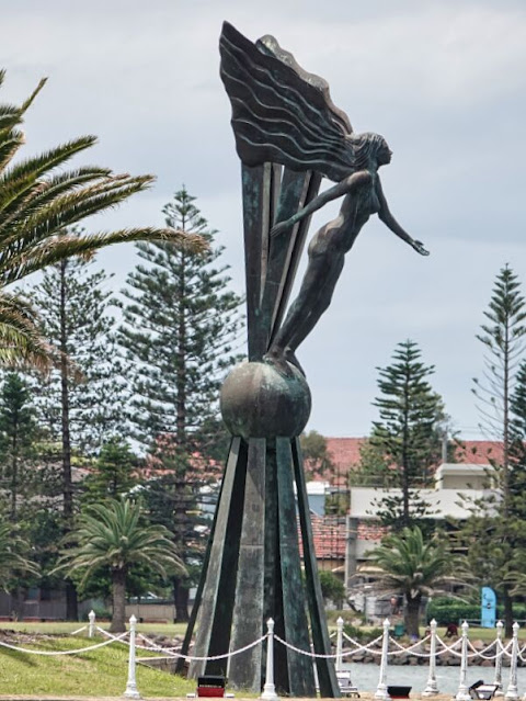 | She is designed like a ship masthead and is said to protect ships that sail in and out of this harbor |