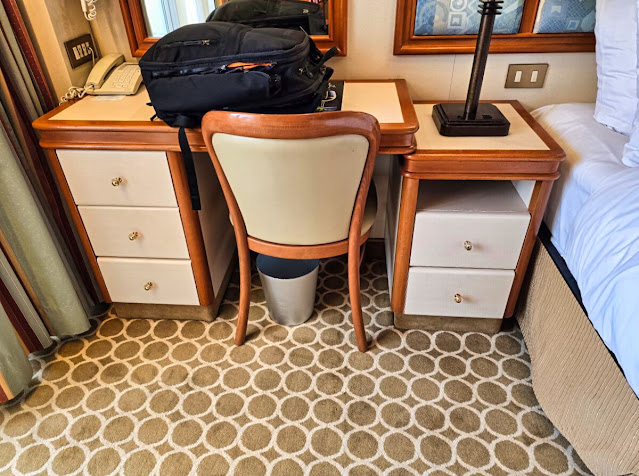 The room itself was rather spartan with the basics. Still, that's all we needed for the one night before the cruise. At under $150, it was a bargain, even if dinner last night at the hotel was pricey.