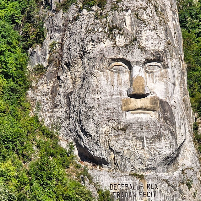 it is a huge rock carving of the face of the last king of Dacia named Decebalus from the first venture A.D. He is credited with fighting with Roman emperors to keep what is present-day Romania independent.